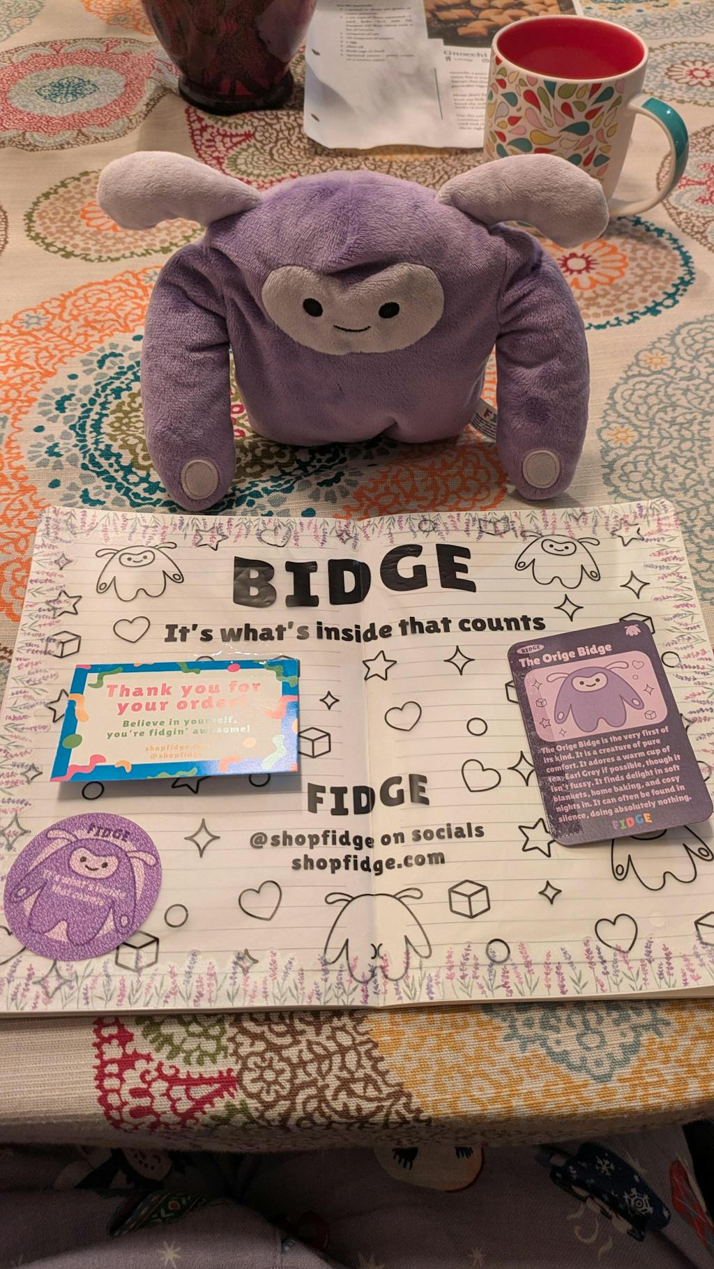 I have been working on this idea for over a year from initial design concept through prototyping and finally to the release of my final product, I'm so happy with it, I hope you'll love Bidge as much as I do. Each Bidge also comes in a custom bag with a collectable card and sensory sticker!